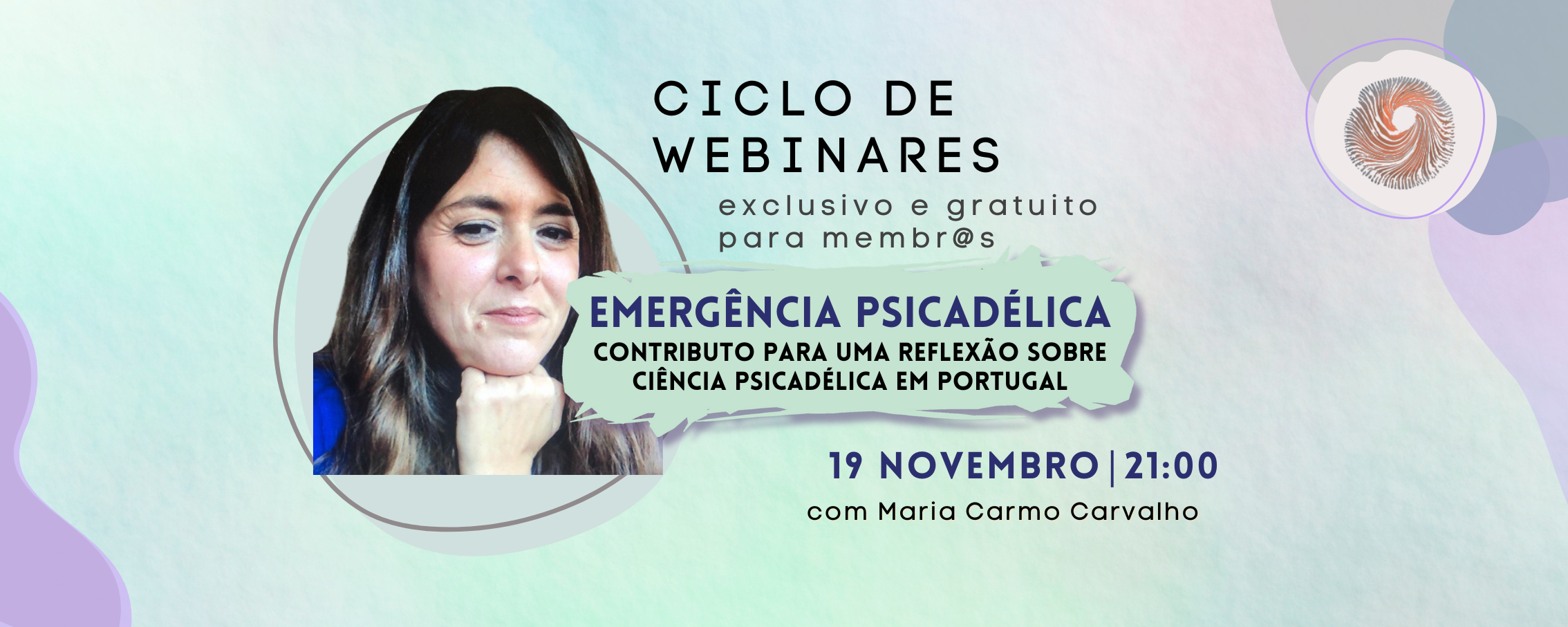O Ciclo de Webinares regressa em Novembro com o tema "Emergência Psicadélica - contributo para uma reflexão sobre ciência psicadélica em Portugal", com a Psicóloga e Professora Universitária Maria Carmo Carvalho. A partir de um recuo sobre o trabalho de coordenação de um programa de intervenção em emergência psicadélica no Boom Festival, serão postos em evidência contributos para a história mais recente da ciência psicadélica no nosso país, esforços de aprimoramento do serviço em função de alterações trazidas por novas substâncias e perfis de utilização, e desafios à investigação e à construção de evidência.